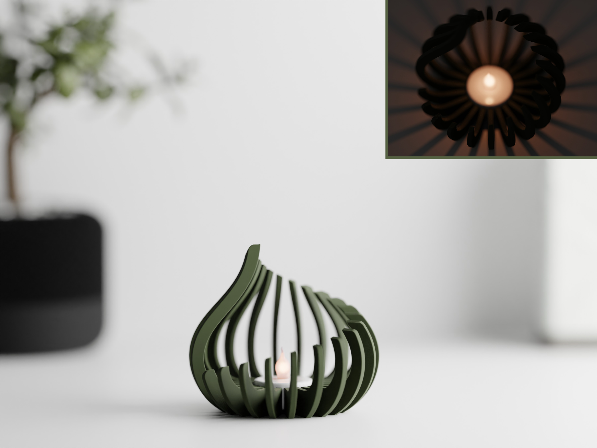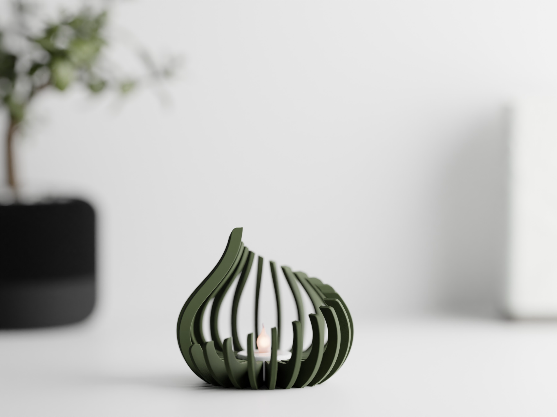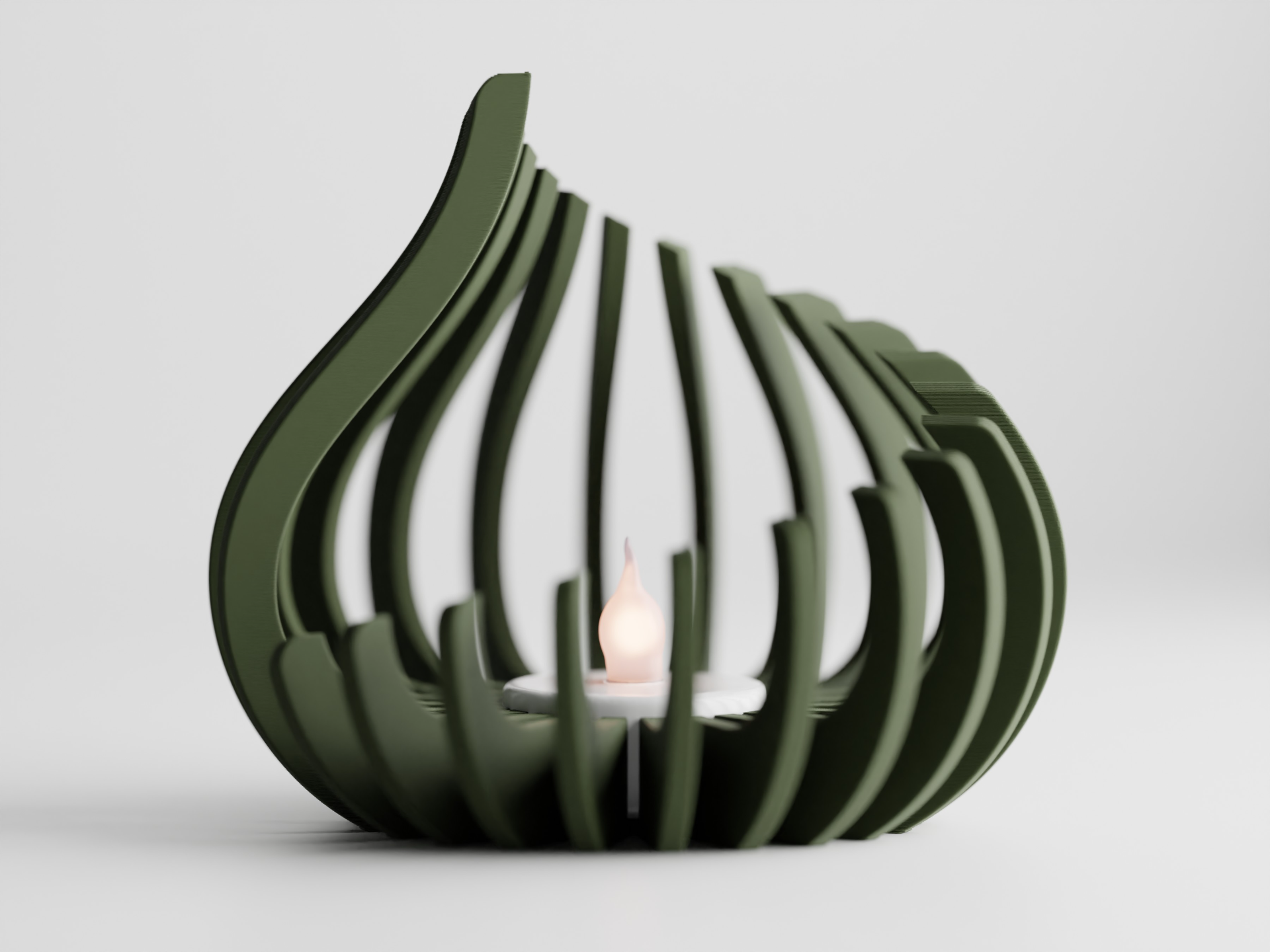Det organiske design er inspireret af flammens bløde bevægelse og skaber et smukt spil af lys og skygger, når et fyrfadslys tændes.